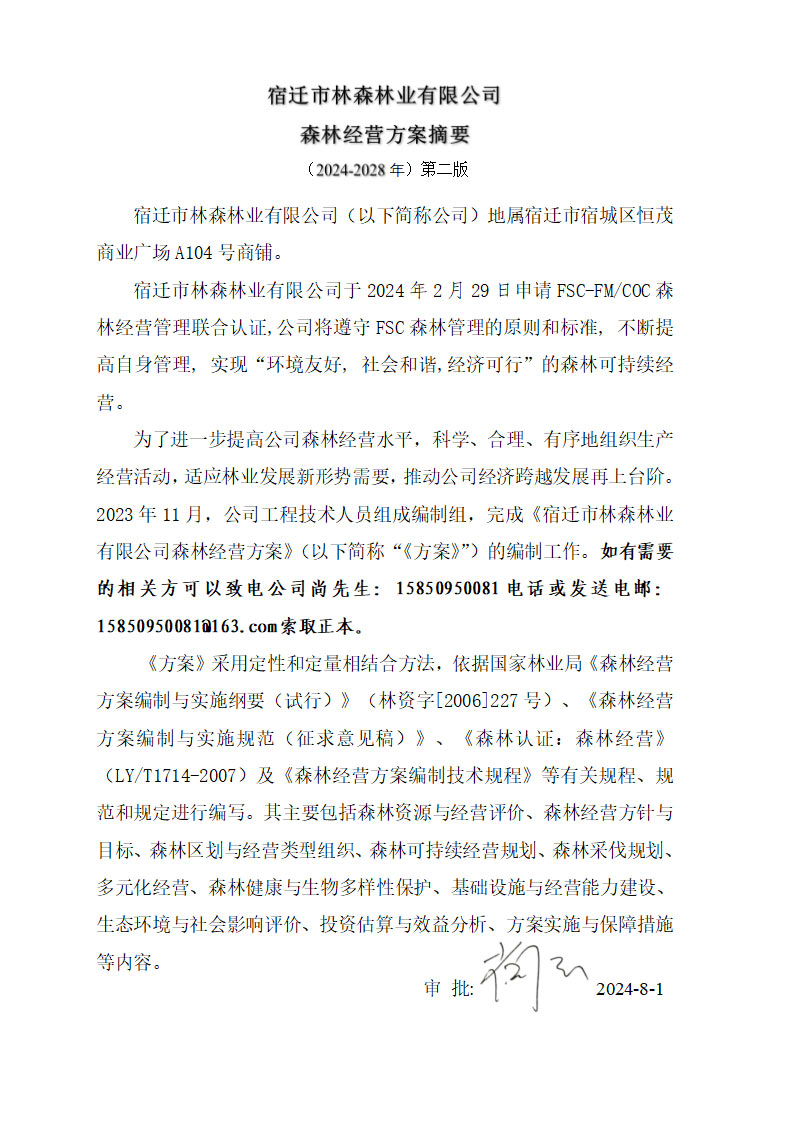 公示摘要1-森林經(jīng)營方案摘要-宿遷市林森林業(yè)有限公司