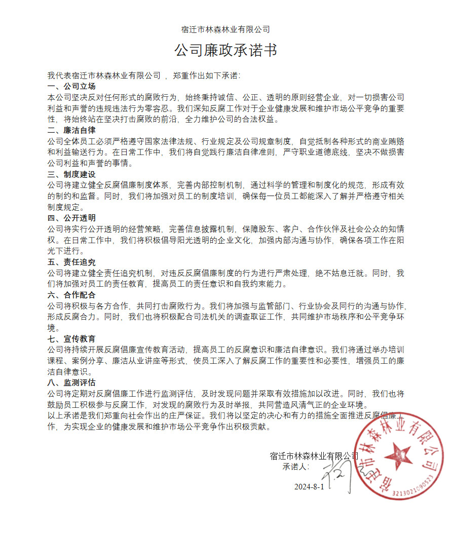 公示5-廉政承諾書-宿遷市林森林業(yè)有限公司